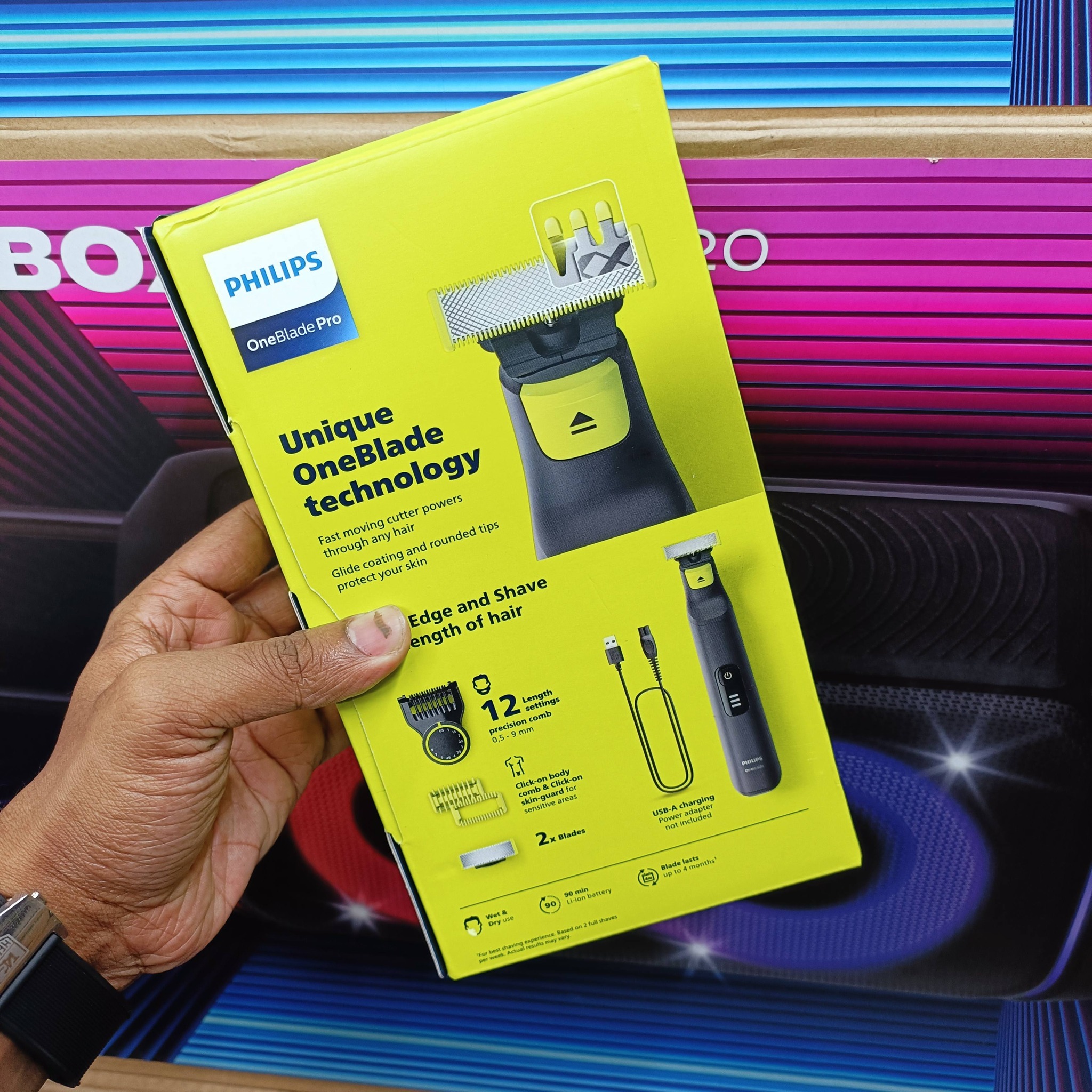 Philips OneBlade Pro QP6542/10 Face + Body, Hybrid Trimmer and Shaver with 12-Length Precision Comb, Waterproof, 90 Min Cordless Use